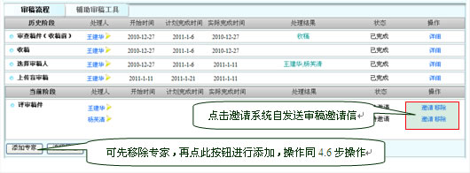 - 外审专家添加成功后,对选错的专家,编辑可进行“移除”操作,重新选择: