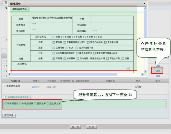 - 编辑根据外审专家的审稿意见,选择下一步操作: