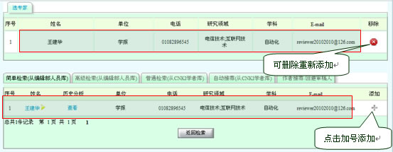 - CNKI学者库收录了1000多万学者信息,是非常丰富的专家资源库。系统将根据稿件的具体情况,智能推荐审稿专家。如果杂志需要多位外审专家,可依此操作进行多次添加。