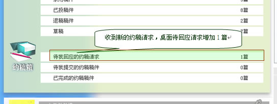 图片5-3 作者桌面待提交约稿稿件数量显示
