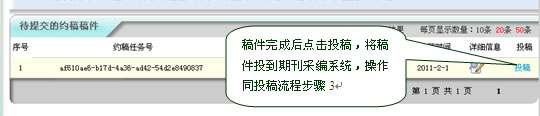 作者完成稿件的撰写后,点击“投稿”完成约稿任务的提交操作。